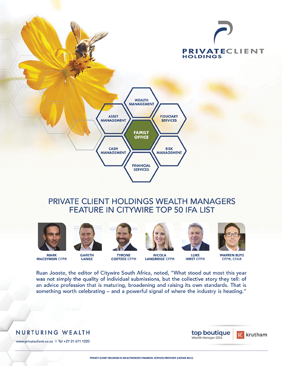 Leach advises clients to strengthen their defences to prevent financial fraud. “An Investec Corporate Cash Management (CCM) account is not only a flexible option for our clients’ regular and ad hoc payments, but the Private Client Holdings CCM team will independently verify a client’s bank details for larger transactions, providing an additional safeguard when moving funds between institutions or internationally,” says Leach.
