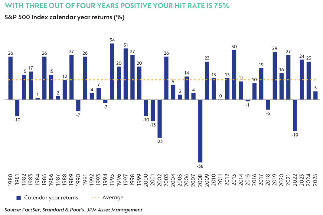 For clients, this message is important: most years have been rewarding. But the real magic lies in the fact that patient investors, who stayed invested through the cycle, benefited from the full compounding power of the market.