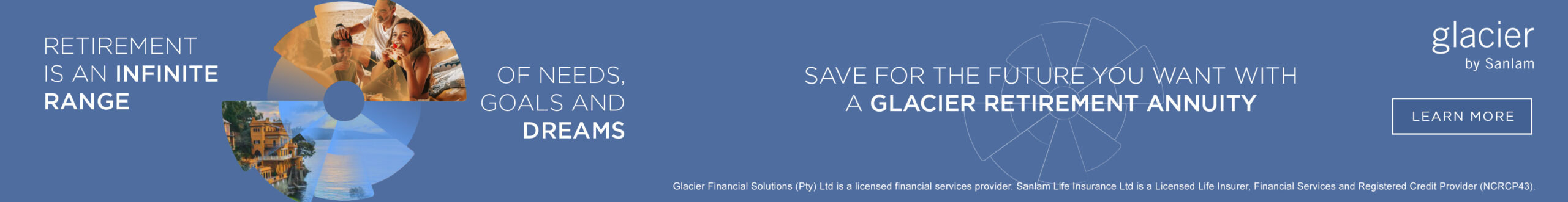 From doing less to doing more, every retirement vision is unique. At Glacier, we help you get where you want to be. Save for your retirement with confidence by investing in a retirement annuity from Glacier. Talk to your financial intermediary about the best option for you, based on your lifestyle and needs.